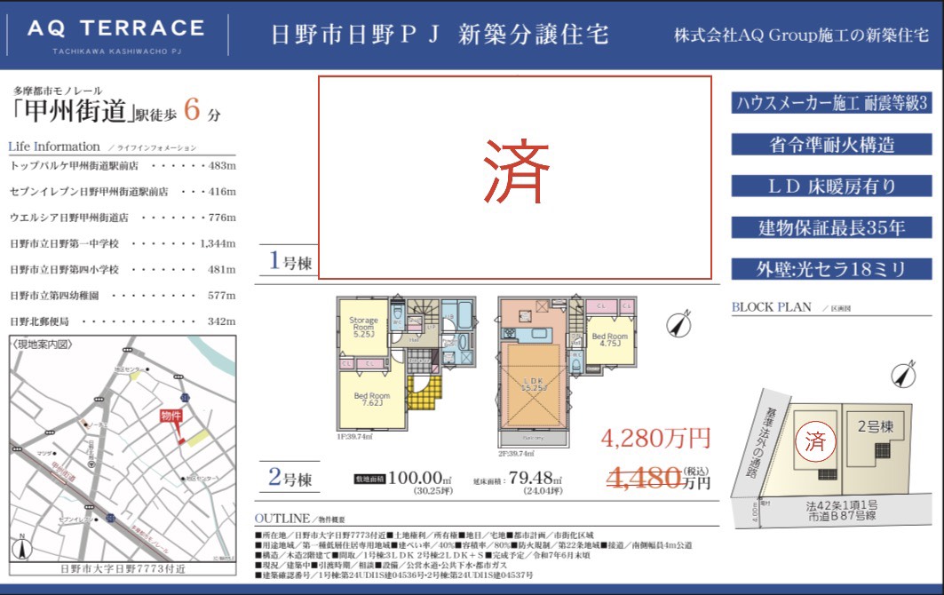 すでに1号棟は成約となり、多くの方がこの立地と建物の価値を評価されたことがうかがえます。